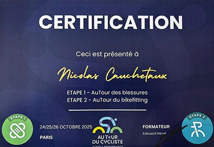 Convaincu du potentiel de ces technologies pour révolutionner l'expérience cycliste, il a suivi la formation Cyclefit chez Joffrey Degueurce, afin d'approfondir son expérience dans le domaine du bike fitting. Ce projet s'est concrétisé avec l'utilisation du matériel innovant de Morpho-Logics.